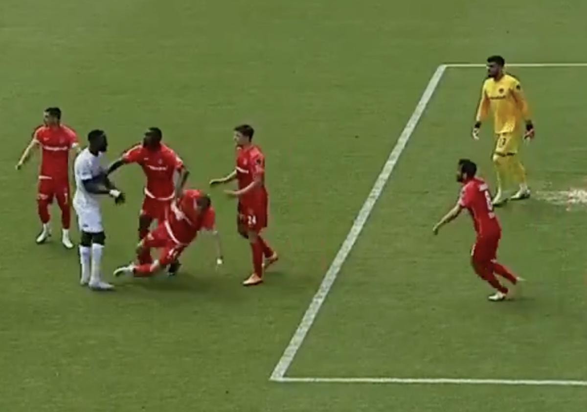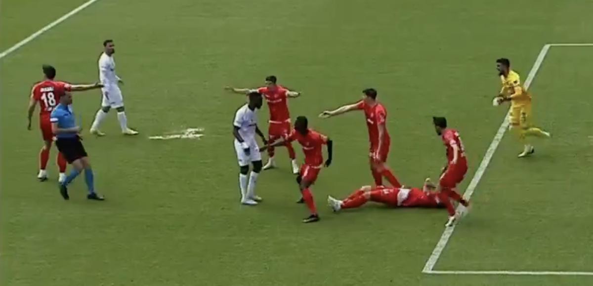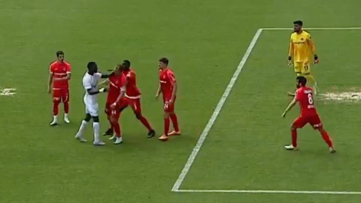 O bölgede Sivaslı futbolcu Mustapha Yatabare ile Ümraniyesporlu Glumac tartışma yaşadı. Glumac, Yatabare'nin müdahalesiyle yerde kaldı. Golcü oyuncuya Hakem Burak Şeker önce sarı kart gösterdi.