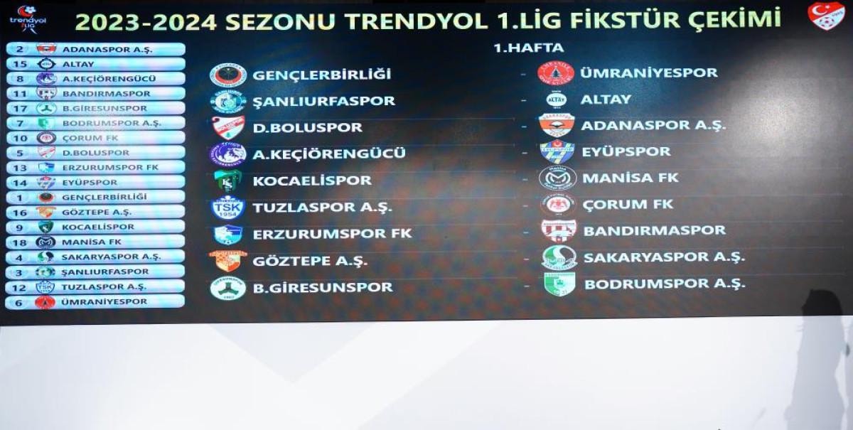 1. Lig 2023-2024 sezonunun fikstür çekimi, TFF Hasan Doğan Milli Takımlar Kamp ve Eğitim Tesisleri’nde gerçekleşti.