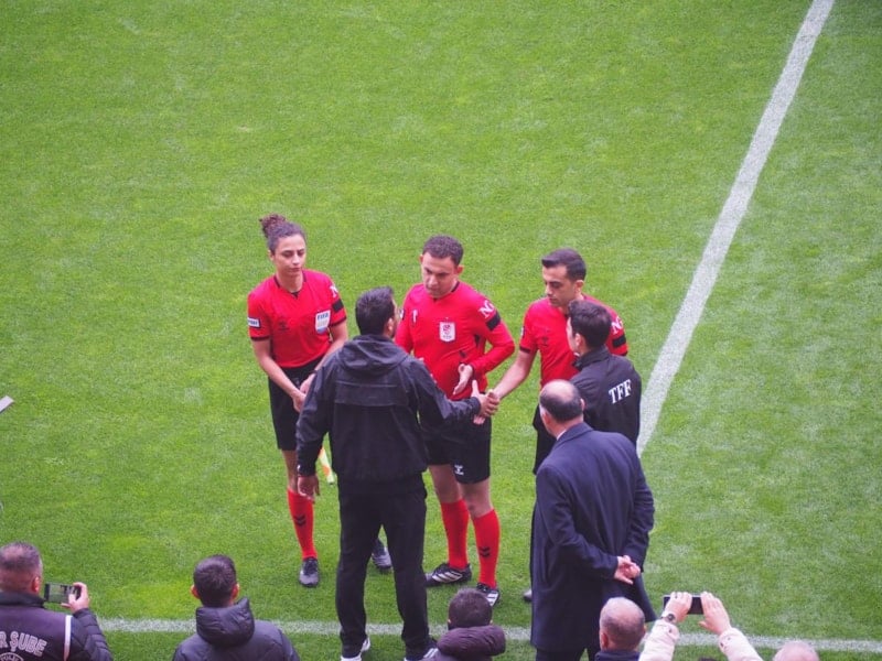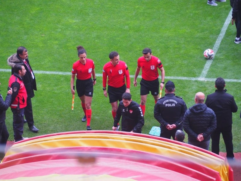 Maçın hakemi Ahmet Resuloğlu, Yeni Malatyaspor Sportif Direktörü Sinan Alkış ve Isparta 32 Spor Kulüp Müdürü Emrah Çelik ile saha içinde bir görüşme gerçekleştirdi.