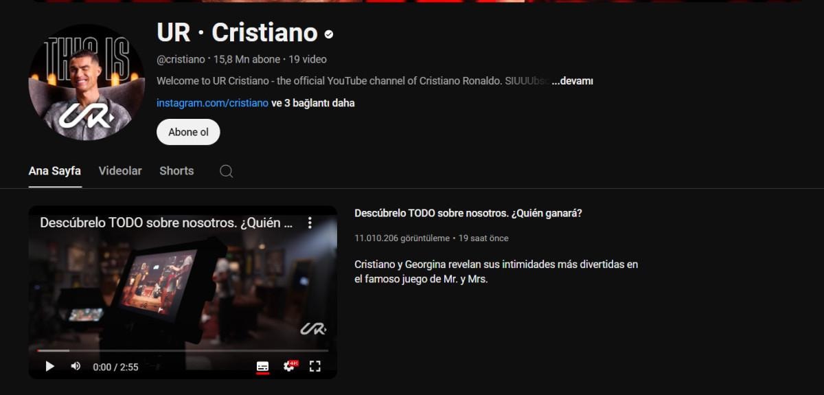 Sosyal medyadan paylaşım yapan Cristiano, YouTube kanalı açtığını bir video ile duyurdu. Ronaldo, sevgilisi Georgina Rodriguez'e de içeriklerinde yer verdi.