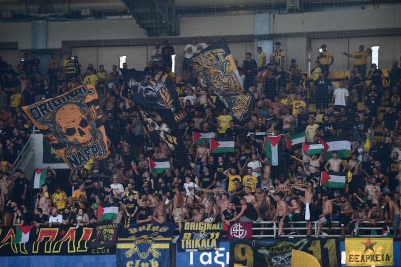 UEFA Konferans Ligi 2. tur ilk maçında Yunanistan ekibi AEK'nın, İsrail temsilcisi Hapoel Be’er Sheva'yı konuk ettiği maçta Filistin protestosu karşılaşmaya damga vurdu. AEK taraftarları, maç önü Filistin bayrağı taşıdığı için stadyuma girmeden gözaltına alınırken, alana giriş yapan taraftarlar maç boyu Gazze’deki soykırımı protesto etti.