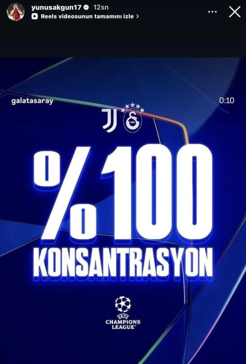 Öte yandan Yunus Akgün "Konsantrasyon" paylaşımıyla sarı-kırmızılı camiaya mesaj gönderdi.