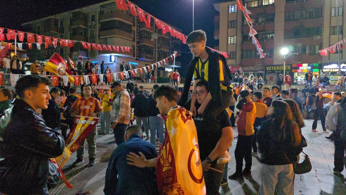 Maçın 75. dakikasından itibaren Galatasaray taraftarları kutlamaların yapılacağı kent merkezinde yer alan Sümer Meydanına akın etti.