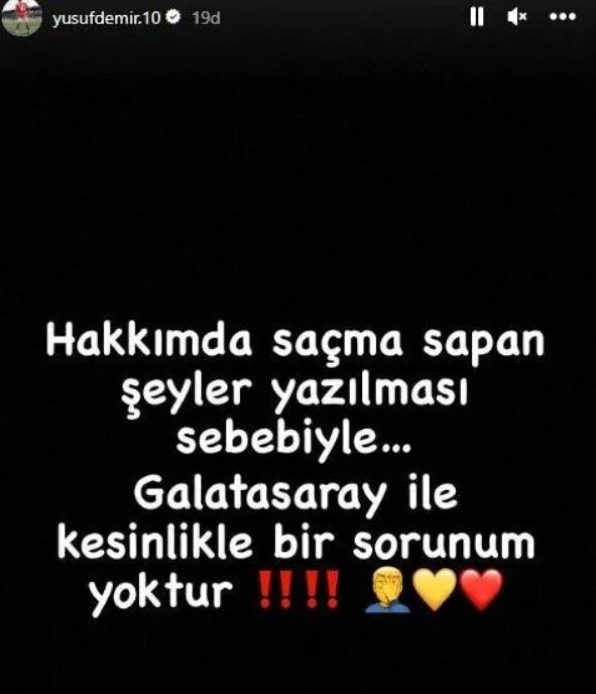 Instagram üzerinden bir paylaşım yapan Yusuf, "Galatasaray ile kesinlikle bir sorunum yoktur." ifadelerini kullandı.