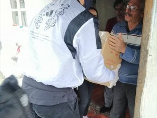 Yazıcı, mahalle muhtarı Mahmut Hayır'ın belirlediği ailelerin evlerine giderek, gıda kolilerini teslim etti.