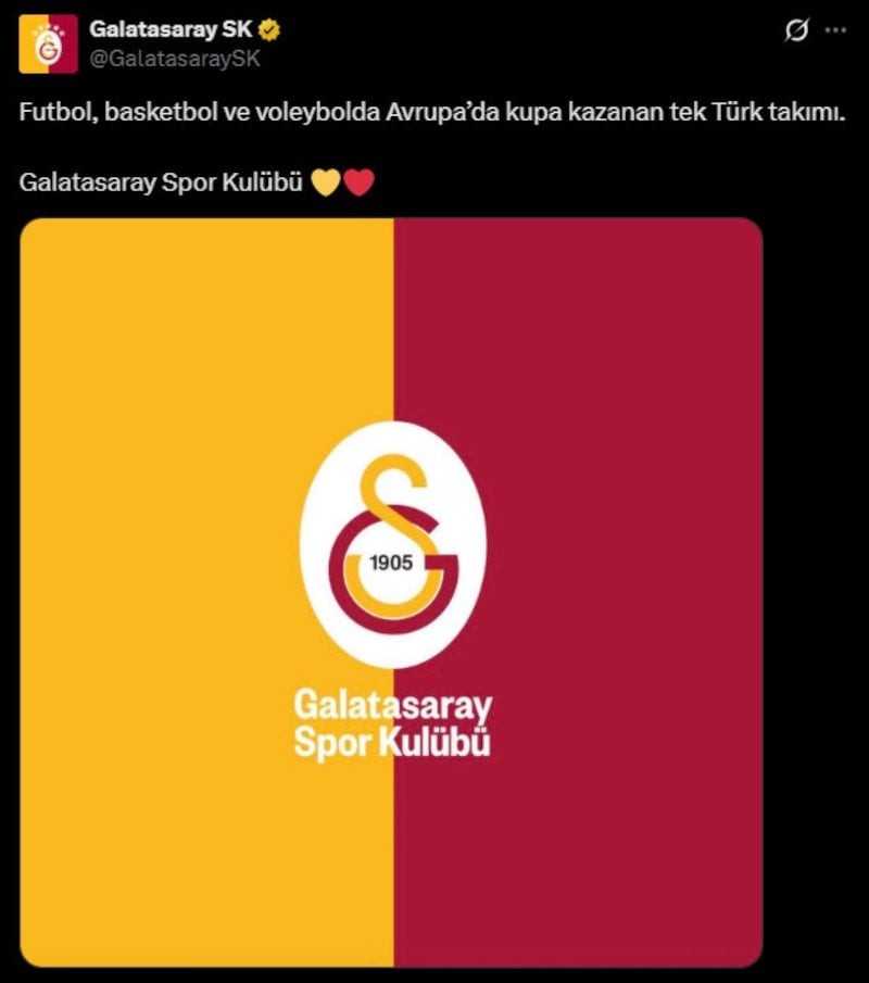 Galatasaray; futbol, basketbol ve voleybolda Avrupa'da kupa kazanan ilk ve tek Türk takımı olarak tarihe adını yazdırdı.