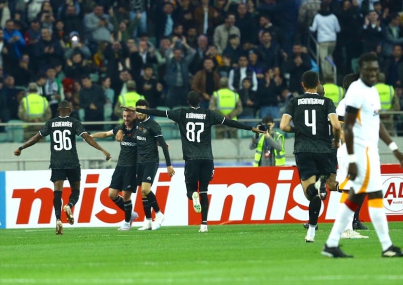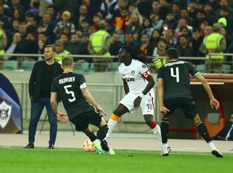 Galatasaray, henüz 4. dakikada Bafetimbi Gomis'in golüyle öne geçerken Karabağ 19. dakikada Redon Xhixha ile eşitliği yakaladı.