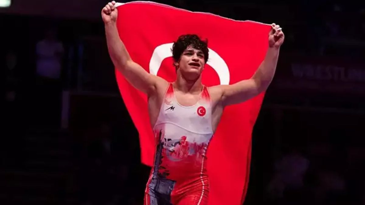 Milli güreşçinin şampiyonluğunu bozkurt selamıyla kutlaması dikkat çekti..