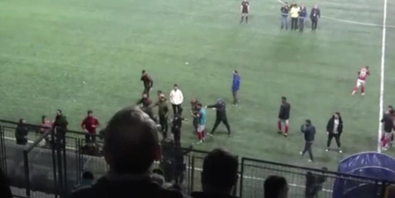 Amatör maçlarda yaşanan kavgalara bir yenisi daha eklendi.