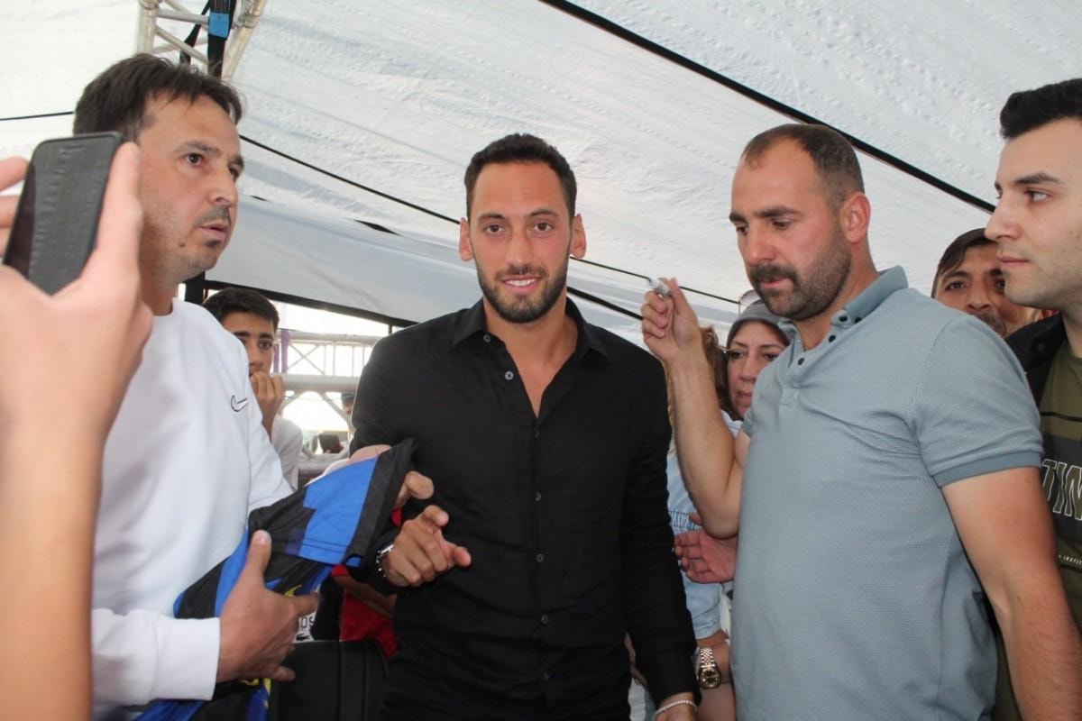 Sevenlerine imzalı forma hediye etmek ve formalarıyla gelen hemşehrilerinin formalarını imzalamak isteyen Çalhanoğlu, kalemi eline alır almaz bir arbede yaşandı.