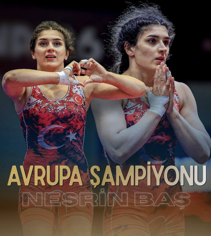 Milli sporcumuz Nesrin Baş, Avrupa Güreş Şampiyonası'nda kadınlar 68 kiloda şampiyon olarak altın madalya kazandı.