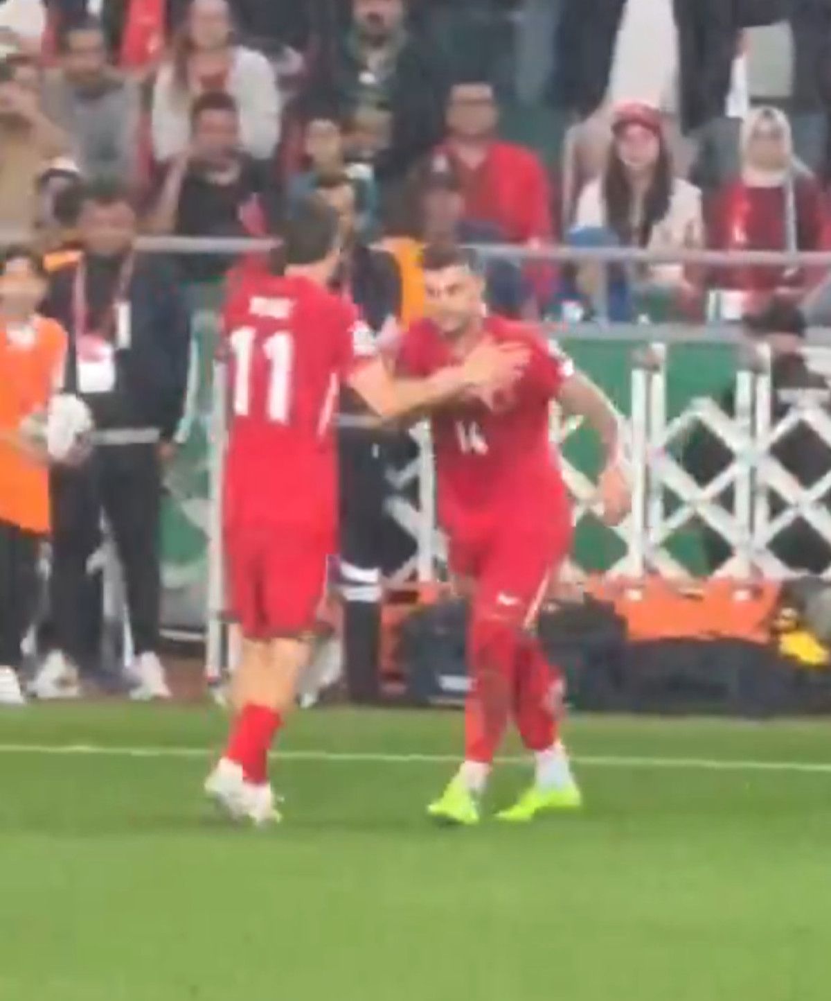 Gürcistan maçında Kerem Aktürkoğlu'nun attığı golün asistini yapan Yunus Akgün, takım arkadaşına sarılmıştı.