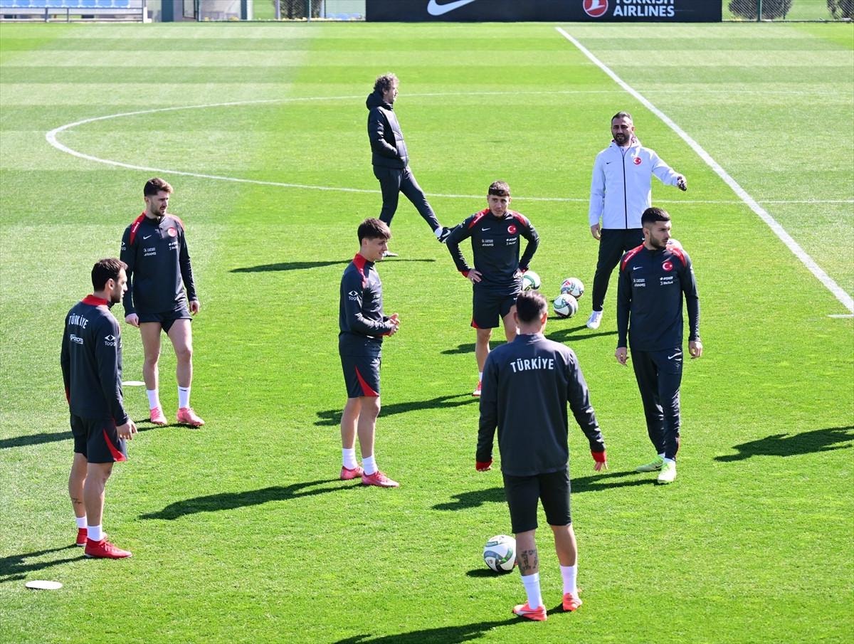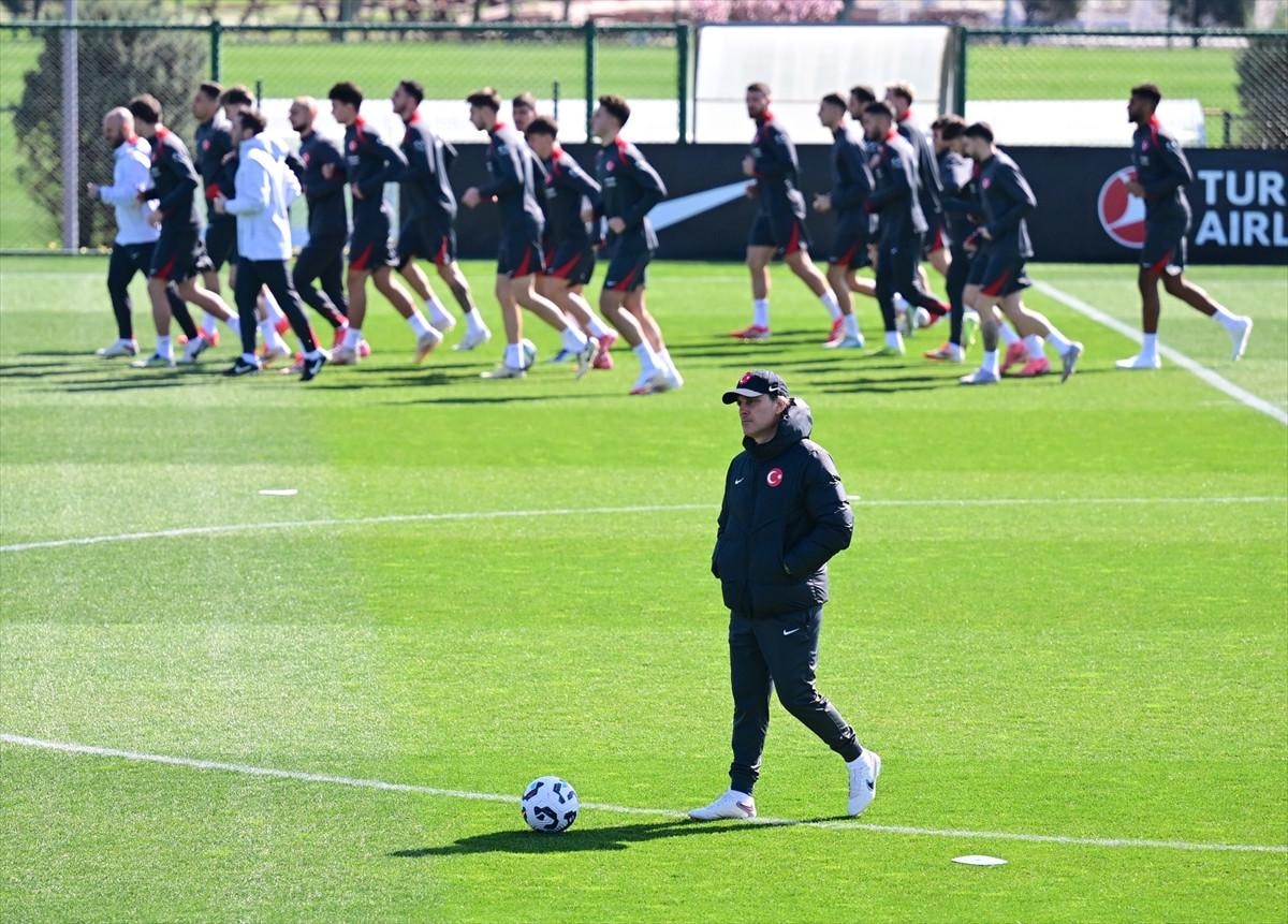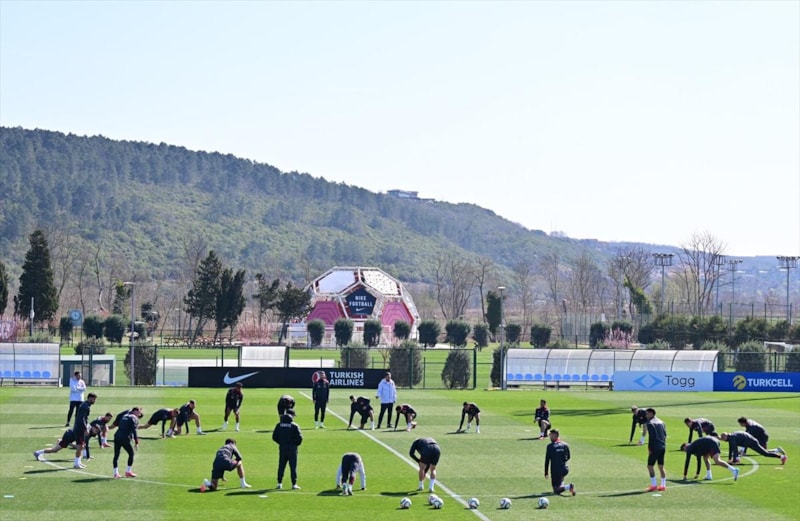 TFF Hasan Doğan Milli Takımlar Kamp ve Eğitim Tesisleri'nde teknik direktör Vincenzo Montella yönetiminde ilk 15 dakikası basın mensuplarına açık gerçekleştirilen antrenman, ısınma hareketleriyle başladı.