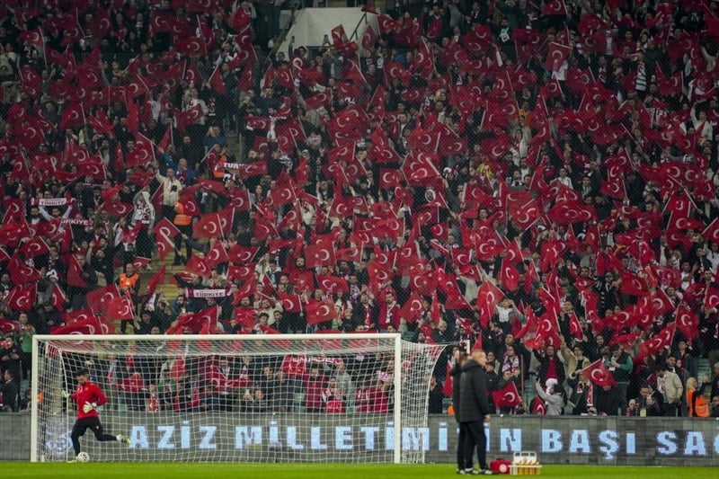 Futbolseverler, Kurtlar Vadisi dizisinin efsane müziği 'Cendere' eşliğinde desteklerini gösterdiler.