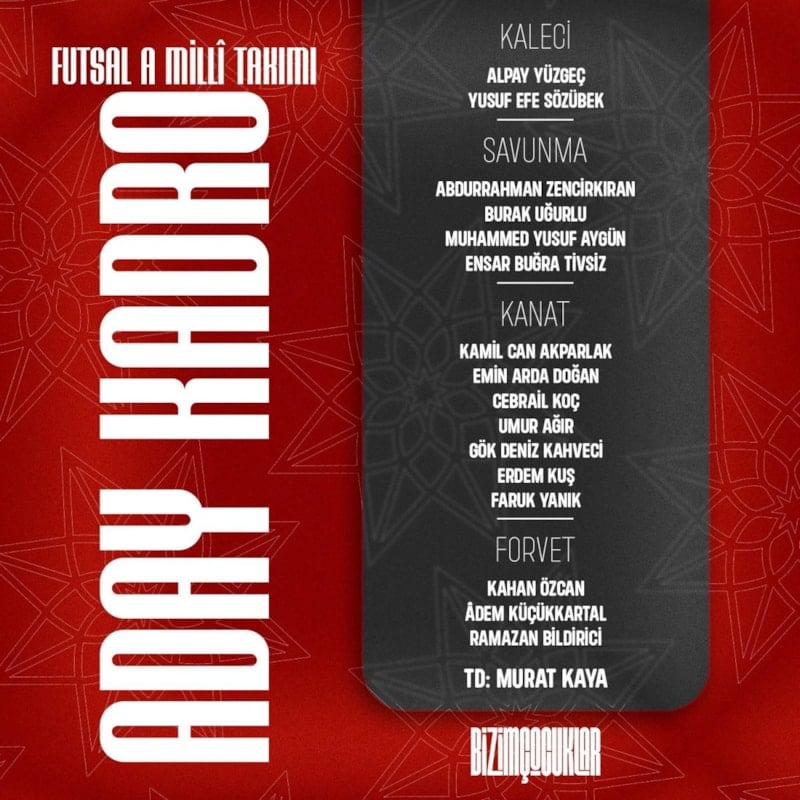 Kaleciler: Alpay Yüzgeç (Heracles Futsal), Yusuf Efe Sözübek (Kingersheim Futsal)