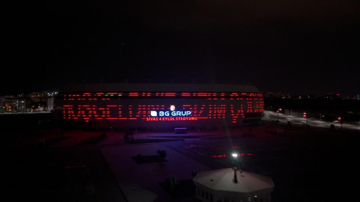 Takımın maçlarını oynadığı Sivas 4 Eylül Stadyumu'nun dış cephesine "Hoş Geldiniz Bizim Çocuklar" yazısı asıldı.