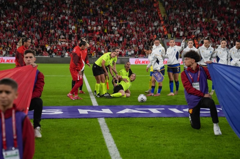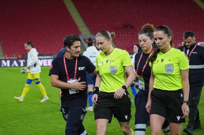 A Milli Kadın Futbol Takımı ile Kosova arasında oynanan UEFA Uluslar B Ligi play-out rövanş maçı öncesinde orta hakem Michalina Diakow, bir anda yere yığıldı.
