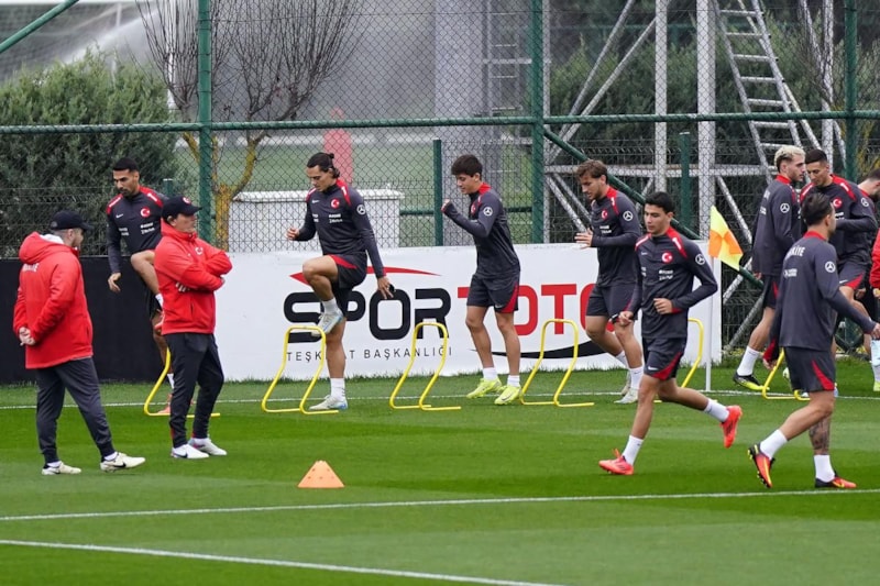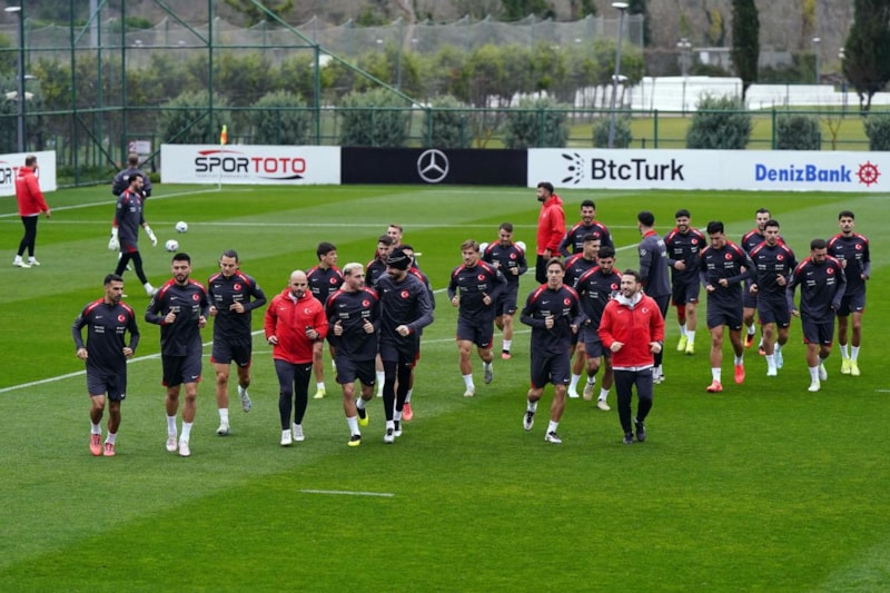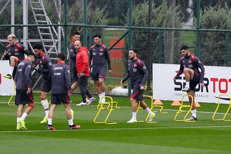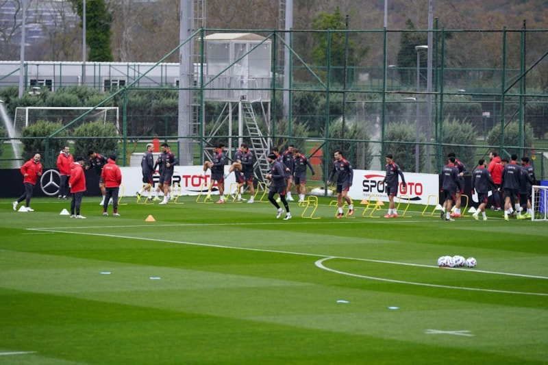 TFF Hasan Doğan Milli Takımlar Kamp ve Eğitim Tesisleri’nde Teknik Direktör Vincenzo Montella yönetiminde ilk 15 dakikası basına açık gerçekleştirilen idman, düz koşu ve ısınma hareketleriyle başladı, ardından pas çalışmasıyla devam etti.