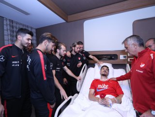 Gerçekleşen ziyarette, A Milli Takım Teknik Direktörü Şenol Güneş, takım kaptanı Emre Belözoğlu ve milli futbolcular, tedavisi birkaç ay sürecek olan 23 yaşındaki futbolcuyu teselli etti ve acil şifalar diledi.