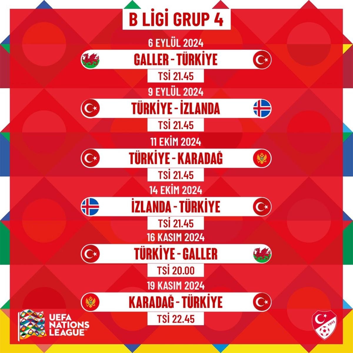 Öte yandan A Milli Takım'ın mücadele edeceği 2024-2025 UEFA Uluslar Ligi fikstürü duyuruldu.