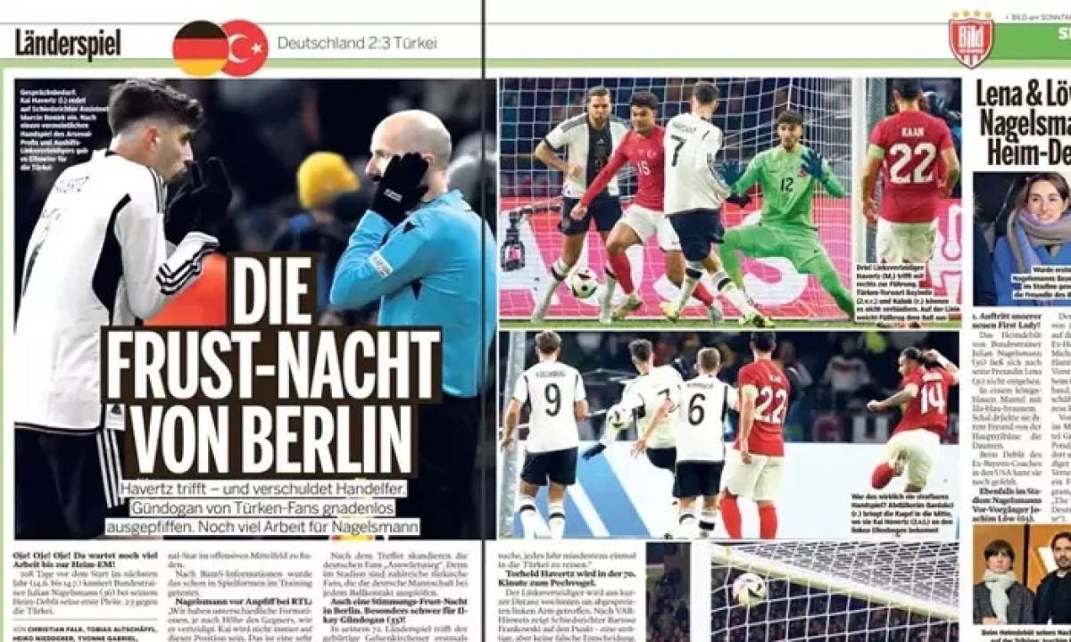 Almanya'nın önde gelen gazetesi Bild, 'Berlin'de hayal kırıklığı gecesi' başlığıyla maçı okurlarına taşıdı.