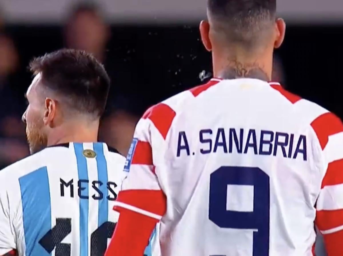Bu mücadeleye ise damga vuran bir an yaşandı. Dakikalar 85'i gösterdiği sırada Paraguaylı Antonio Sanabria, Lionel Messi'nin arkasına tükürdü.