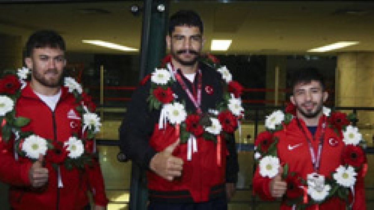 Esenboğa Havalimanı'nda büyük bir coşkuyla karşılanan şampiyon güreşçilere, Güreş Federasyonu ile ASKİ Spor Kulübü yetkileri çiçek verdi. Havaalanında aileleri tarafından karşılanan sporcular, büyük mutluluk yaşarken, Avrupa, Dünya ve Olimpiyat Şampiyonu Taha Akgül'ün karşılamaya gelen babasının elini öptüğü anlar objektife yansıdı.