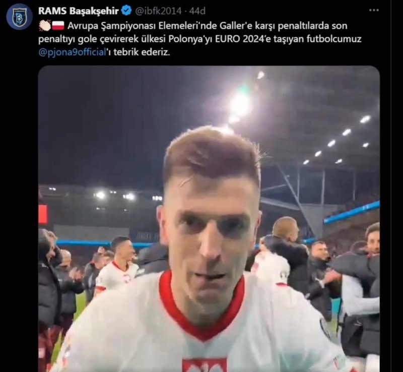 Başakşehir’in Polonyalı golcüsü Krzystof Piatek, ülkesinin EURO 2024’e gitme hakkı elde ettiği Galler maçında son penaltı atışını ağlarla buluşturdu. Turuncu-lacivertliler, resmi sosyal medya hesabından yaptığı paylaşımla Piatek'i tebrik etti.
