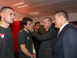 Maç sonu A Milli Takımımızı tebrik eden Erdoğan, soyunma odasında millilerimizle görüştü.