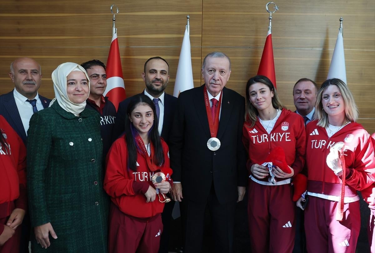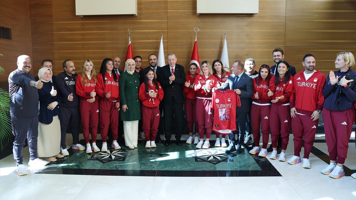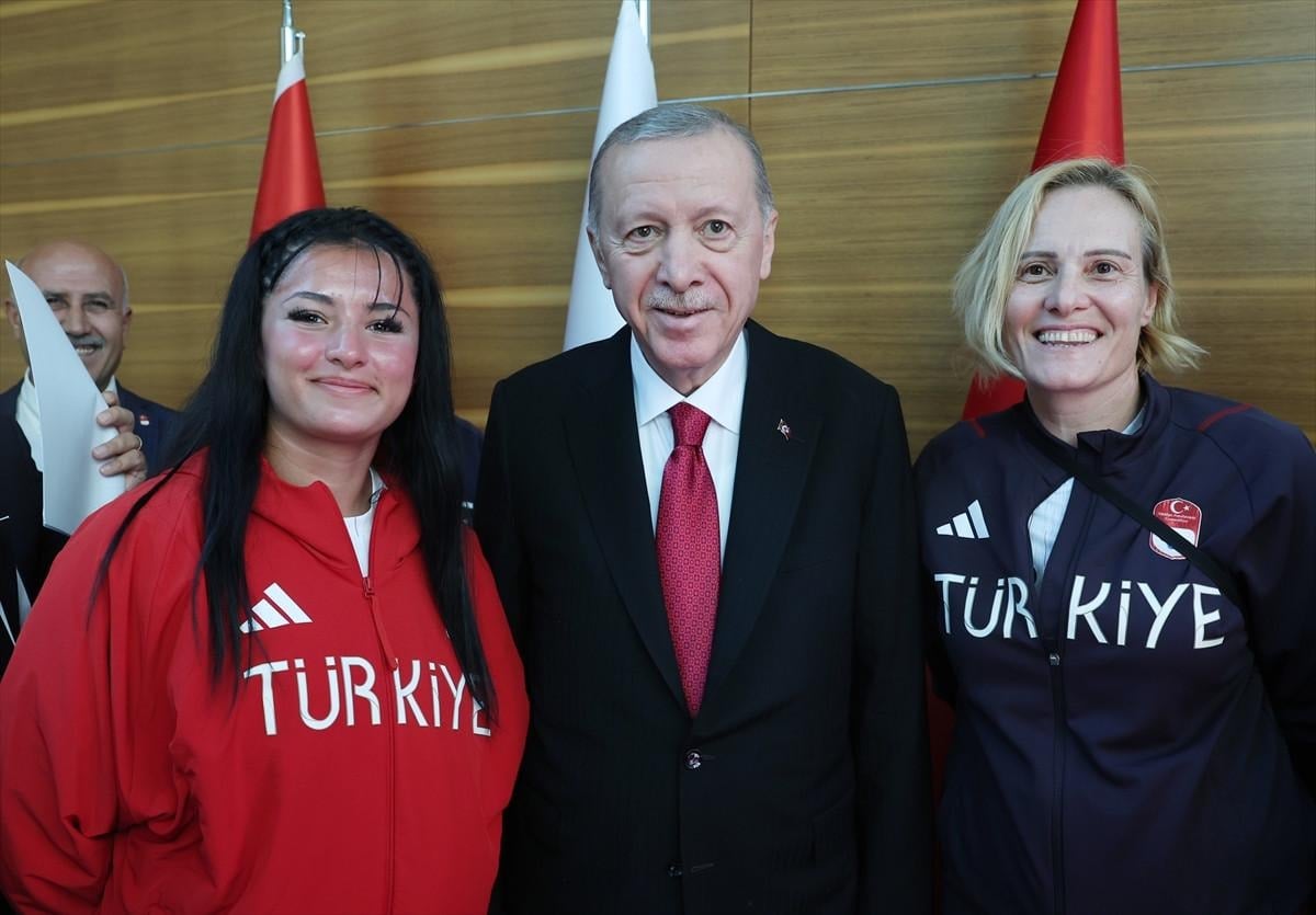 Sporcuları tebrik eden Cumhurbaşkan Erdoğan, milli sporcularla selfie de yaptı.