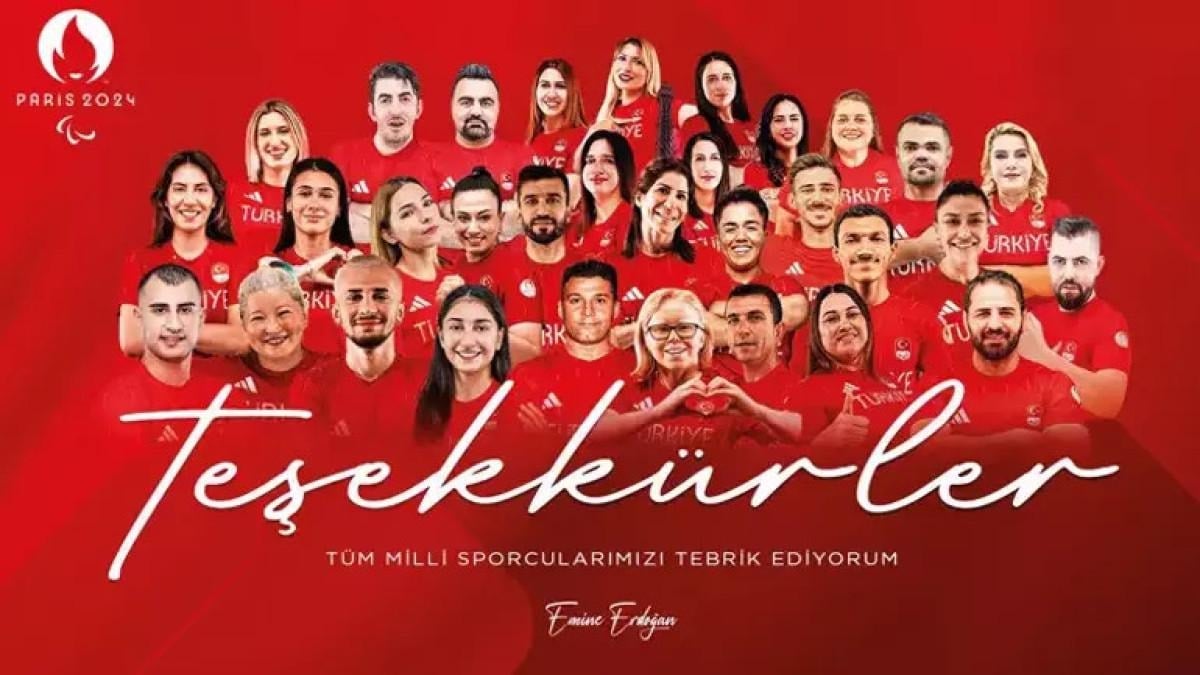 Türkiye Milli Paralimpik Takımı sporcularının başarısını kutlayan bir başka isim ise, sosyal medya hesabından yaptığı paylaşım ile Emine Erdoğan oldu.