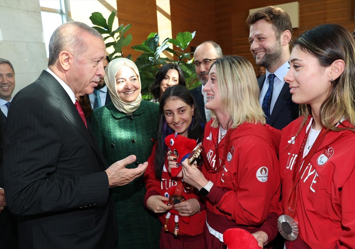 Cumhurbaşkanı Recep Tayyip Erdoğan'ın, Türkiye Milli Paralimpik Takımı sporcularını kabul ettiğine yönelik bilgi, Cumhurbaşkanlığı'nın sosyal medya hesabından paylaşıldı.
