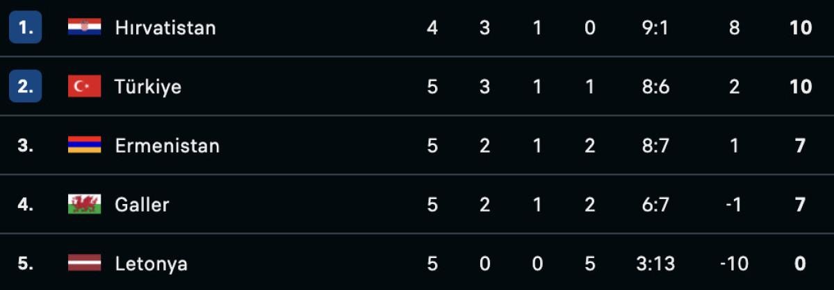 Bu galibiyetle birlikte Hırvatistan puanını 10'a yükselterek Türkiye ile puanını maç eksiğiyle eşitledi. Ermenistan ile 7 puanda kaldı.