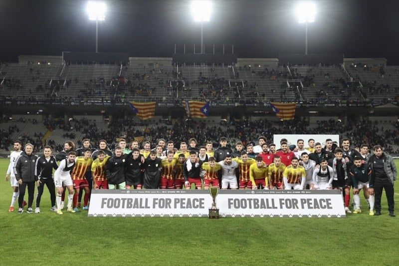 Filistin Milli Futbol Takımı, Katalonya bölgesel takımına 2-1'lik skorla mağlup oldu.
