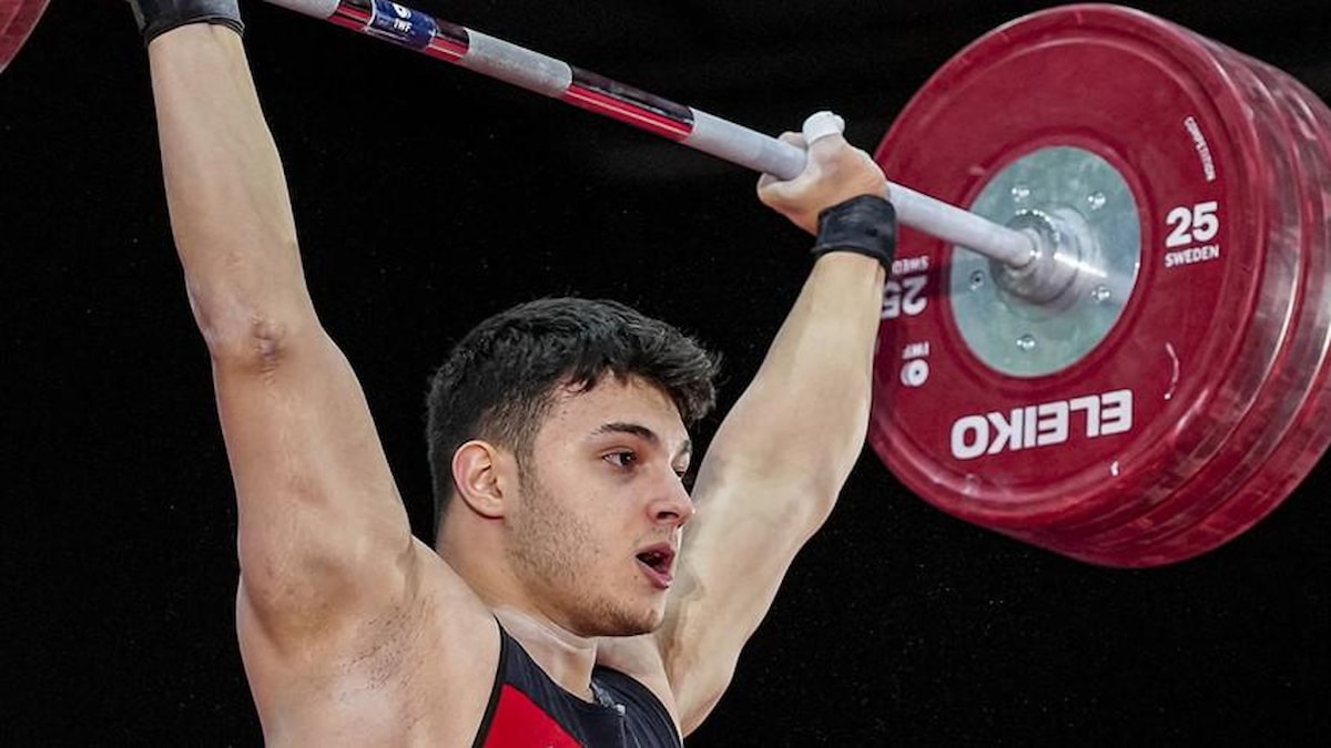 Türkiye Halter Federasyonu Başkanı Talat Ünlü, müsabakalar sonrası milli sporcuya madalyasını takdim etti.