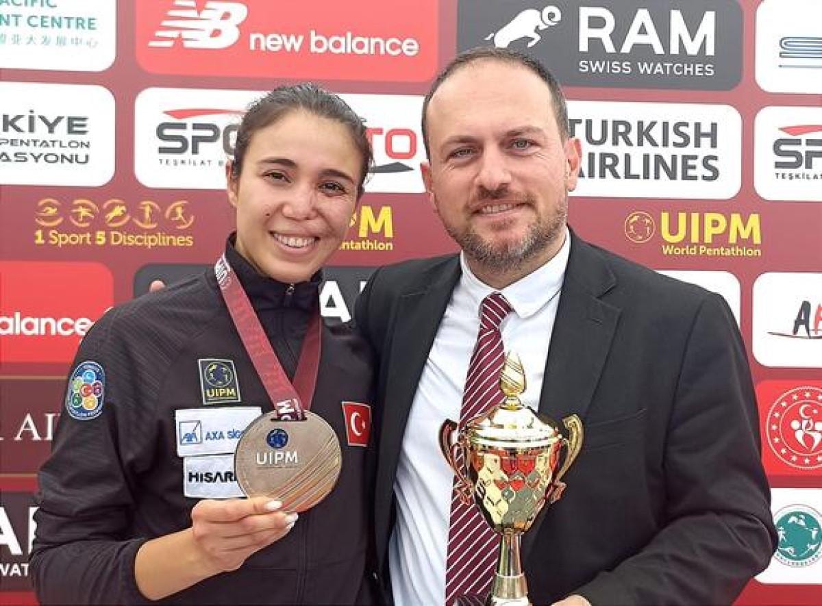 Düzenlenen madalya töreninde İlke Özyüksel'e madalyasını Modern Pentatlon Federasyonu Başkanı Veli Ozan Çakır takdim etti.