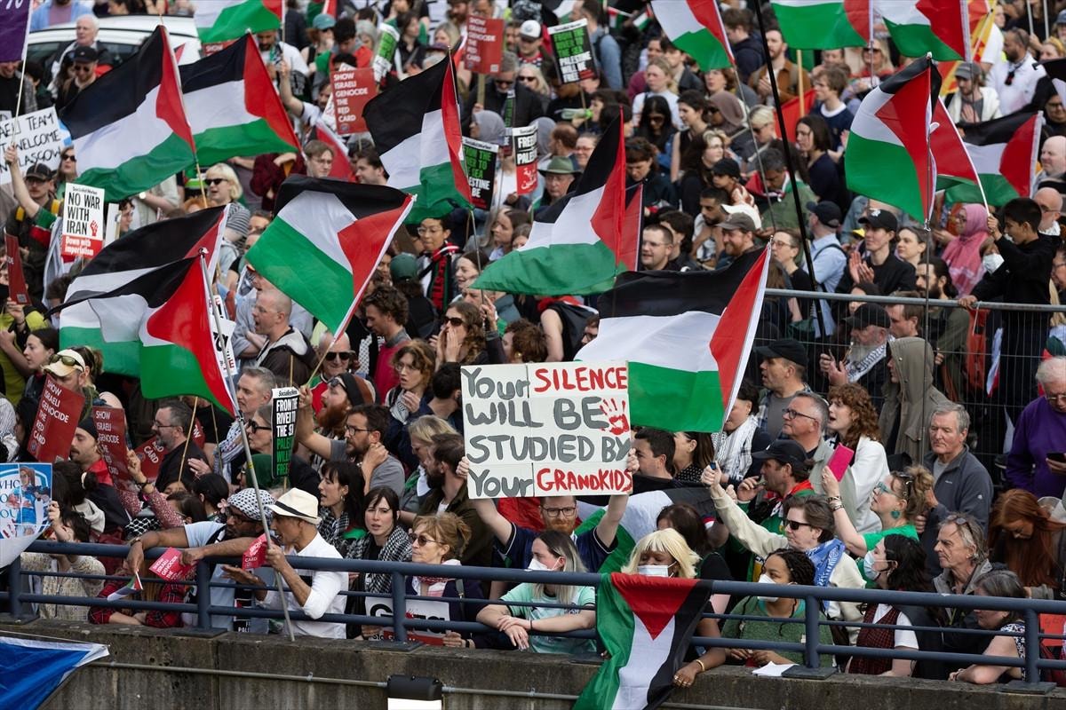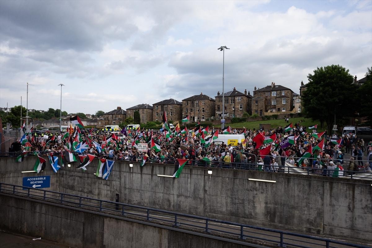 Avrupa Kadınlar Futbol Şampiyonası Elemeleri'nde İskoçya ile karşılaşan İsrail'in Filistin'e yönelik saldırıları protesto edildi.