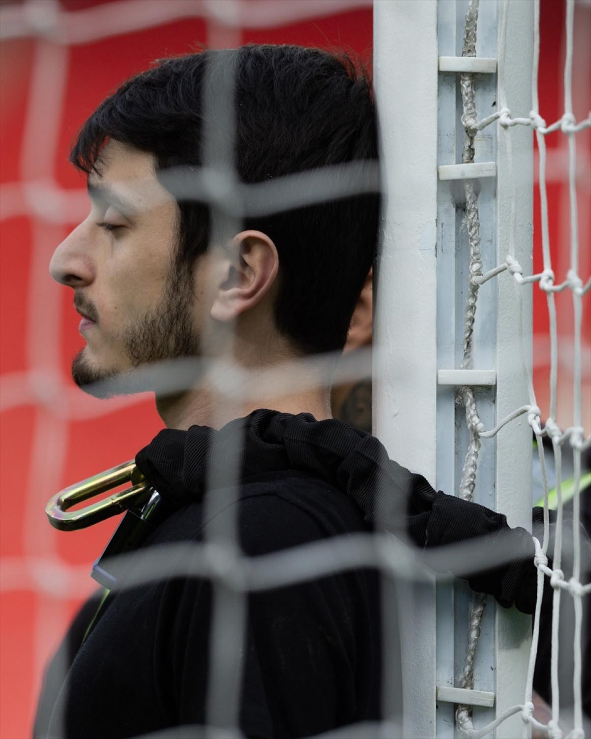 Kendisini kale direğine zincirleyen Filistin destekçisi, polis müdahalesiyle sahadan çıkarıldı.