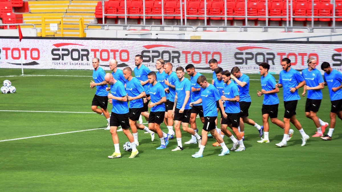 Teknik direktör Age Hareide yönetiminde saat 16.00'da Gürsel Aksel Stadı'nda başlayan idmanda, oyuncular ısınma hareketleri ve düz koşuyla çalışmalarına başladı.