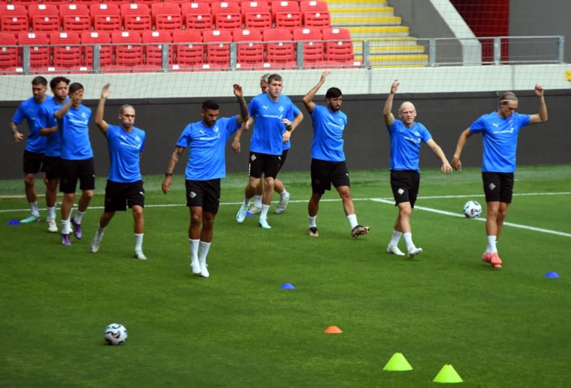 UEFA Uluslar B Ligi 4'üncü Grup 2’nci maçında yarın A Milli Futbol Takımı ile Gürsel Aksel Stadı'nda karşı karşıya gelecek İzlanda, son idmanını gerçekleştirdi.
