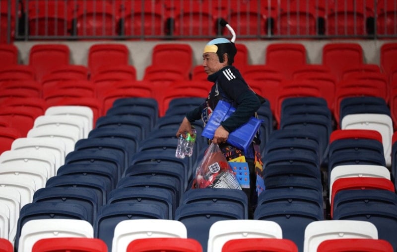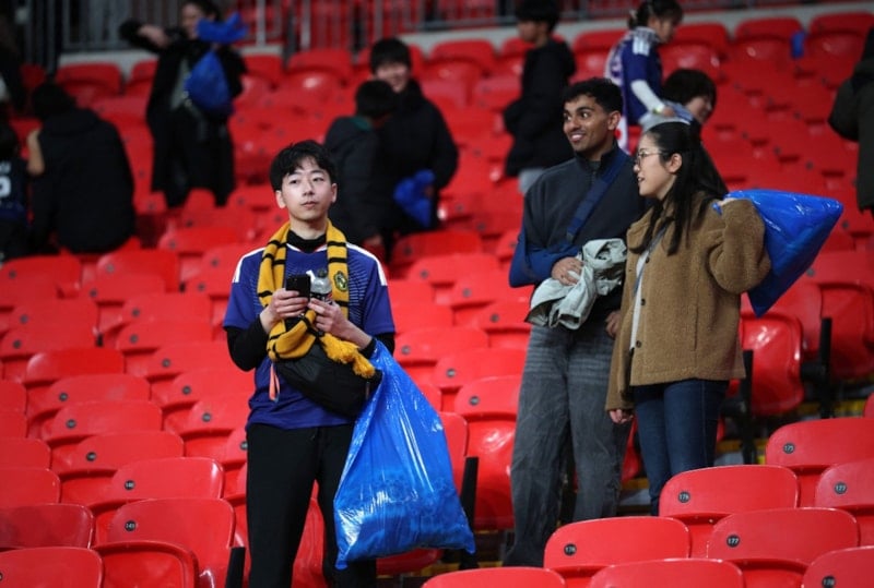 Maçın oynandığı Wembley Stadyumu’nda tribünleri temizleyen Japon futbolseverler, daha sonra stattan ayrıldı.
