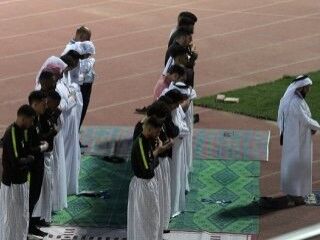 Oldukça önem arz eden mücadele öncesinde futbolcular ve teknik heyet saha kenarında cemaatle namaz kıldı ve akabinde dua etti.