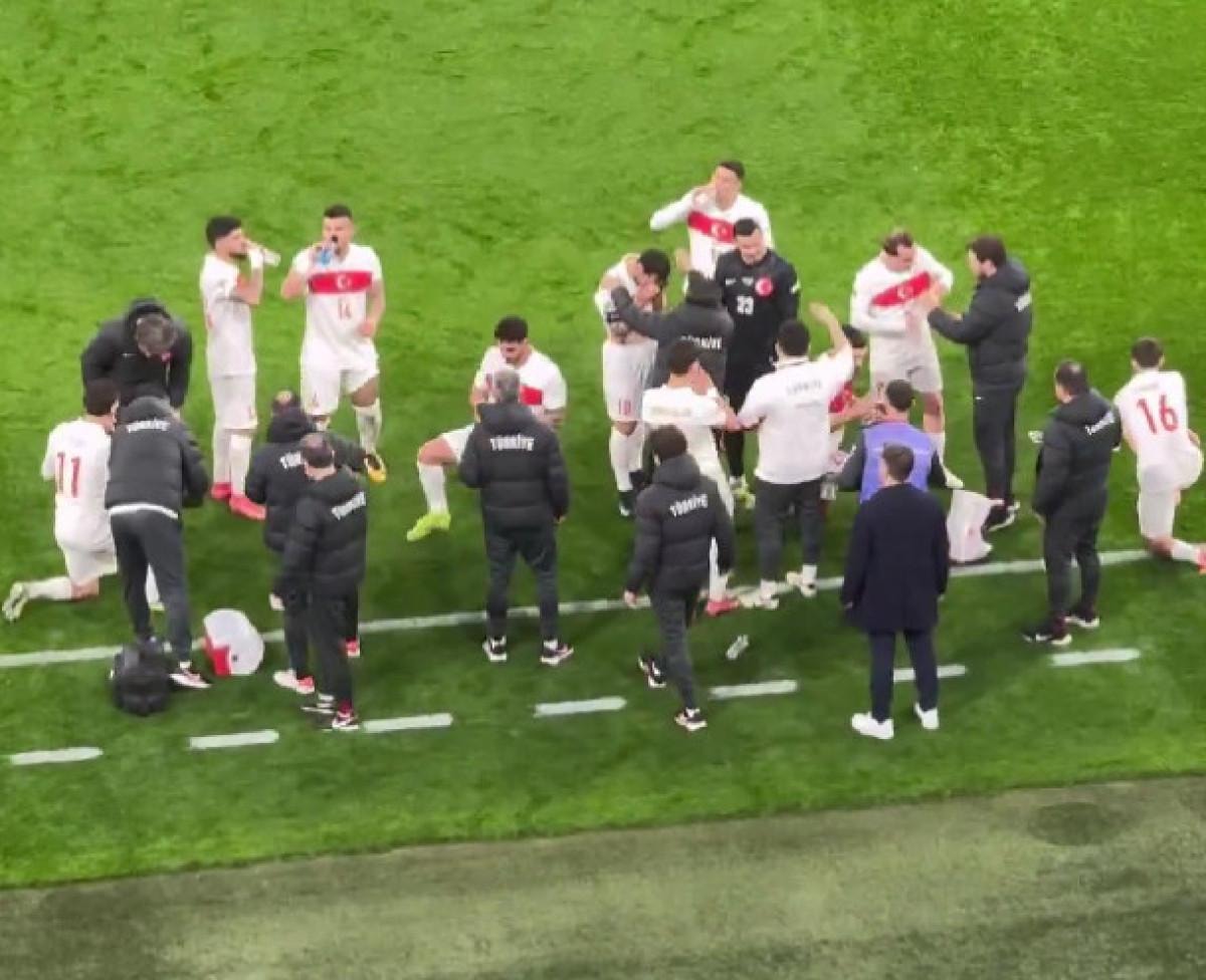 Hakem Zwayer’in düdüğünün ardından yedek kulübesinin önüne gelen milli futbolcular, hurma ve suyla oruçlarını açtı.