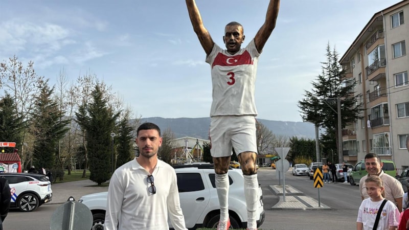 Milli futbolcu Merih Demiral, Bolu’da dikilen heykelini ziyaret etti.