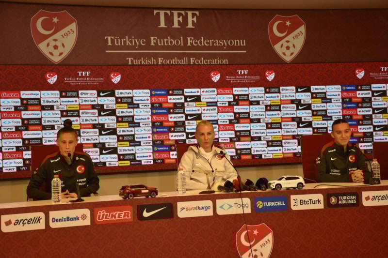 Çalışma öncesinde Teknik Direktör Necla Güngör Kıragası ile futbolcular Ece Türkoğlu ve Ebru Topçu maçın oynayacağı 4 Eylül Stadı'nda düzenlenen basın toplantısına katıldı.