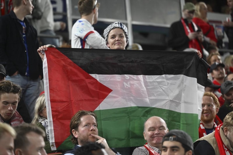 Norveçli taraftarlar, federasyonun izin vermesiyle stada Norveç ve Filistin bayraklarıyla gelerek desteklerini sürdürdü.