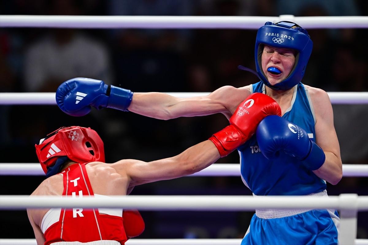Fransa'nın başkenti Paris'teki North Paris Arena'da boks branşının kadınlar 50 kilo çeyrek final mücadelesi yapıldı.