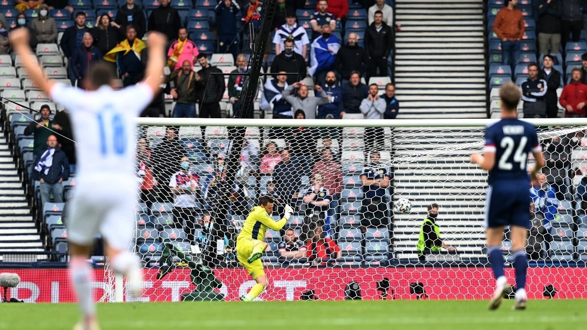 EURO 2020 grup maçları devam ederken Çekyalı futbolcu Patrick Schick, İskoçya ağlarına enfes bir gol gönderdi.