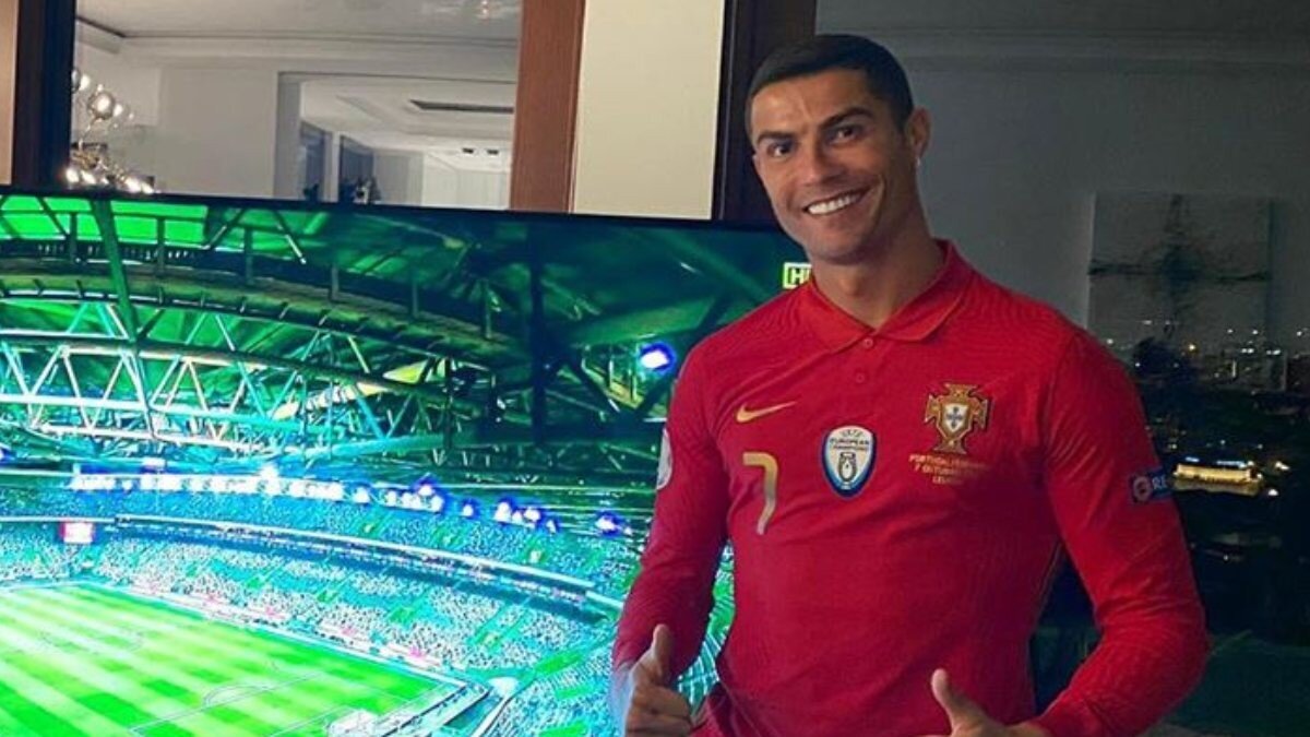 Takım arkadaşlarını ekran başında destekleyen 35 yaşındaki futbolcunun kullandığı televizyonun büyüklüğü, sosyal medyada gündem oldu.