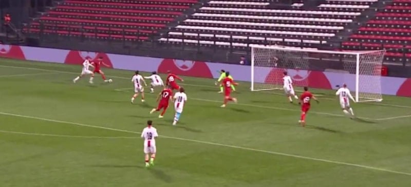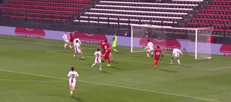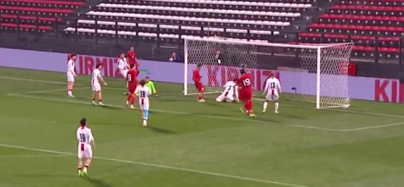 Genç futbolcunun kale sahasına yerden gönderdiği topta Beşiktaşlı Semih Kılıçsoy düzgün bir tek vuruş yaparak ağları sarsmayı başararak milli takımı öne geçirmeyi başardı.